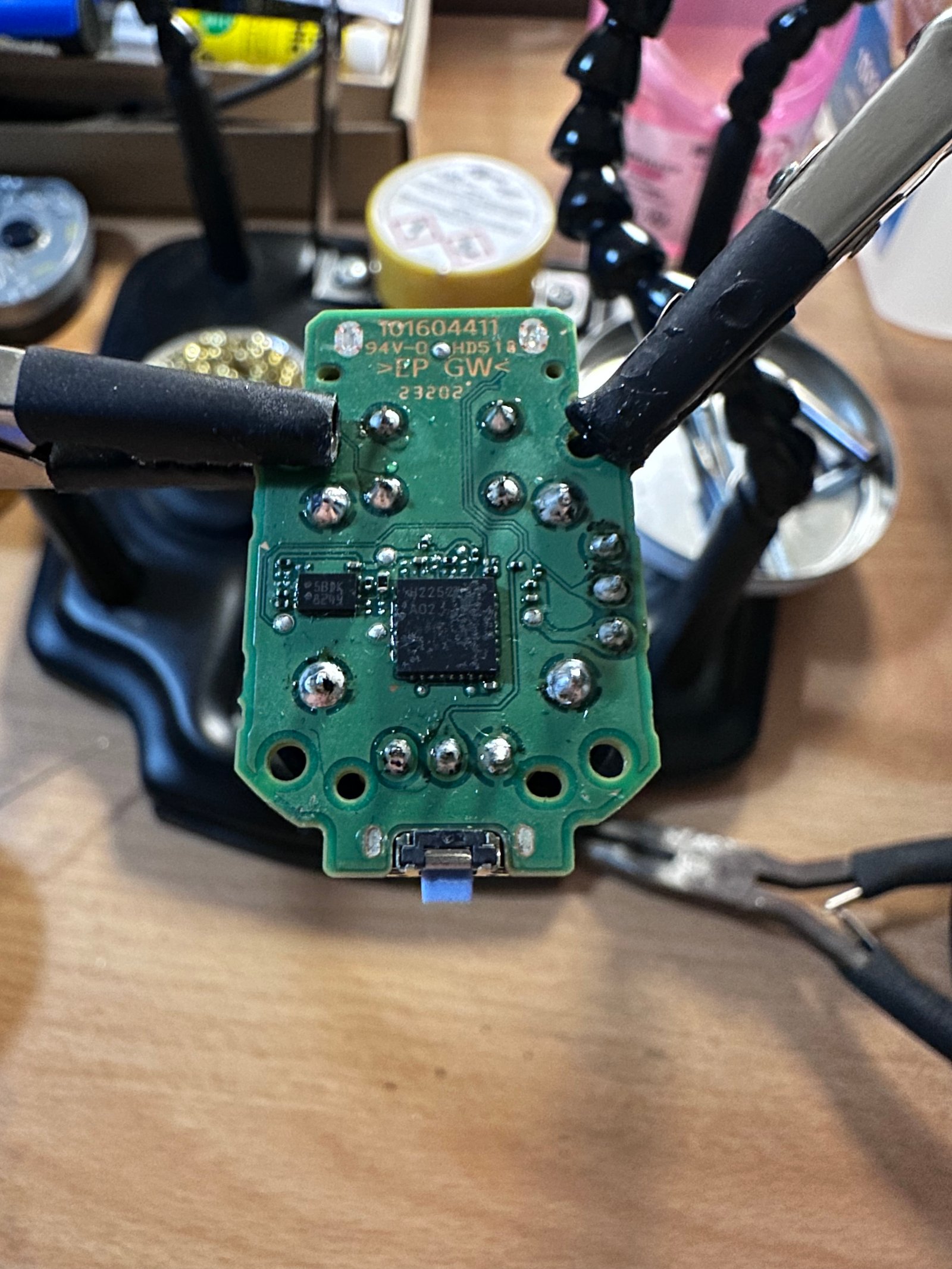 Outils : tournevis de précision, levier en plastique, modules joysticks magnétiques, fer à souder, étain de soudage. J'ai travaillé sur une surface propre et bien éclairée.